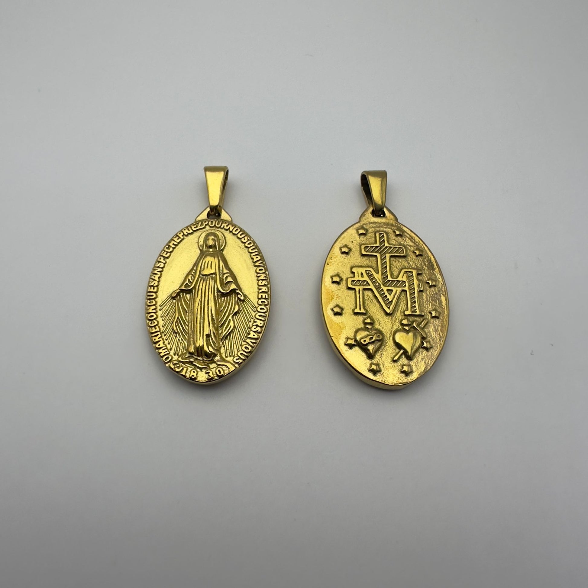 A Medalha de Nossa Senhora das Graças é uma invocação da Virgem Maria, associada à graça divina e à intercessão materna de Maria, também conhecida como medalha milagrosa.